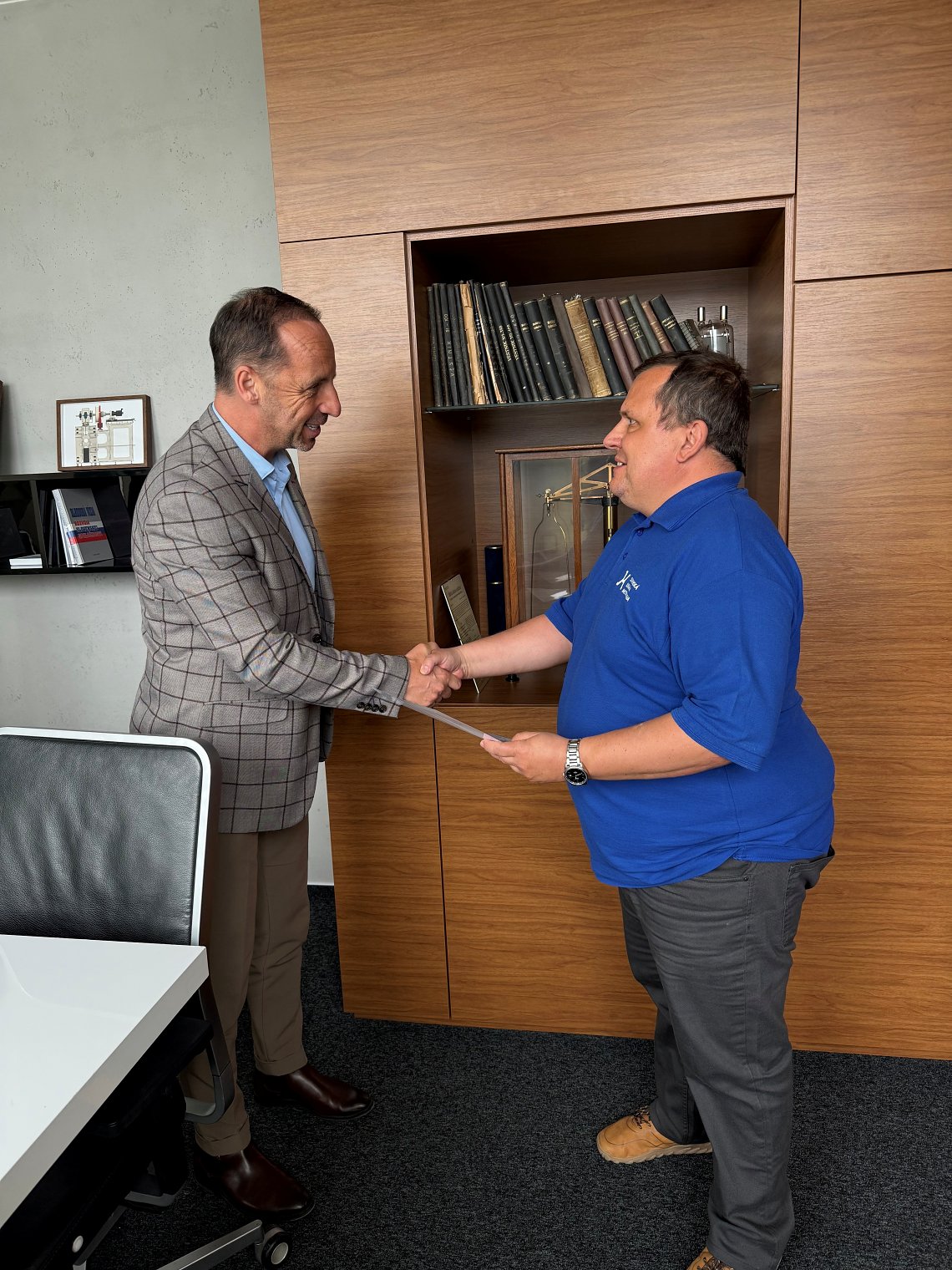 Slovenská legálna metrológia, n.o. ocenila troch svojich najlepších technických zamestnancov za rok 2024. Ocenení boli pracovník laboratória hmotnosti pán Peter Zábojník, pracovník laboratória objemu pán Maroš Jaraba a pracovník v laboratóriu teploty pán Ing. Pavel Riečan.
