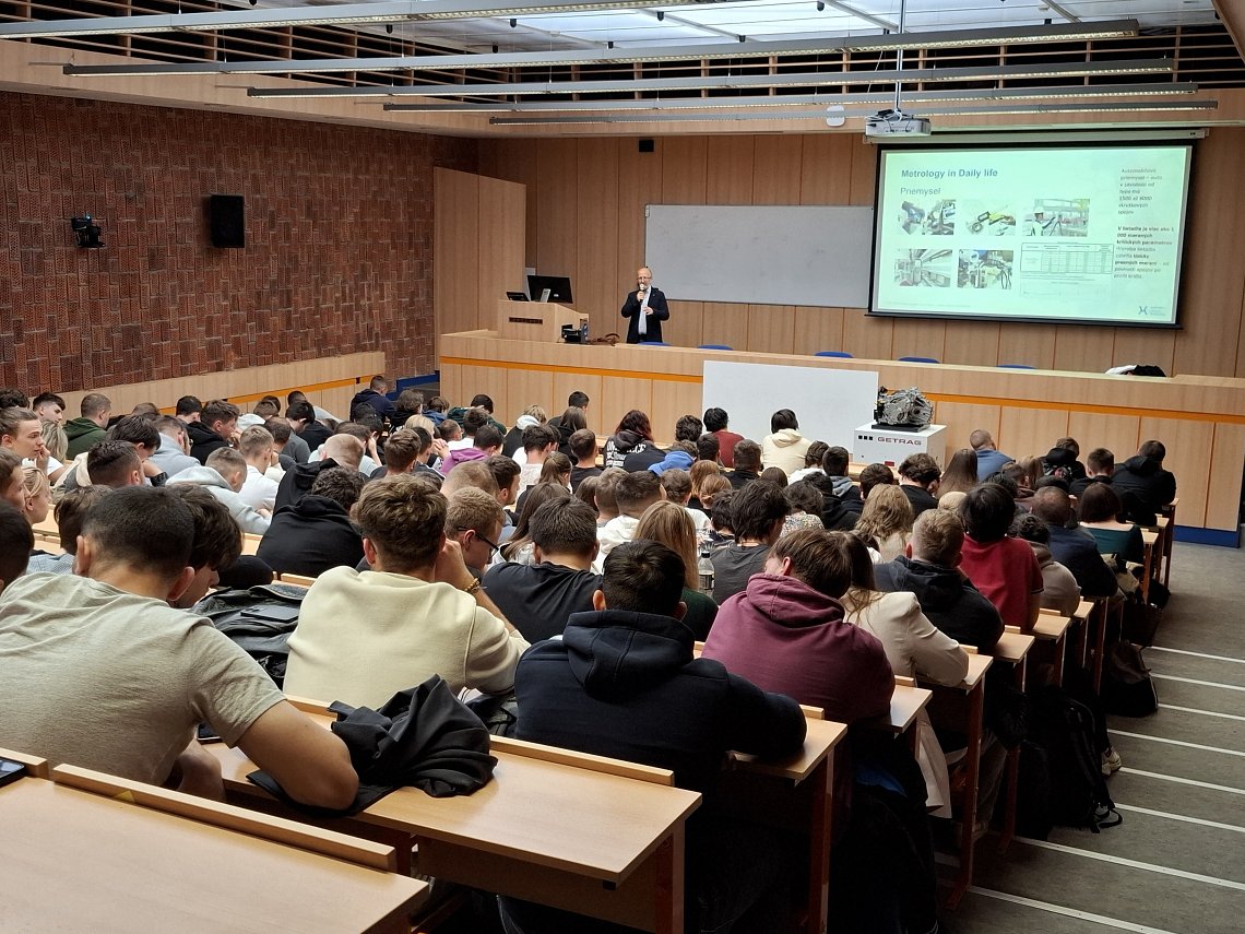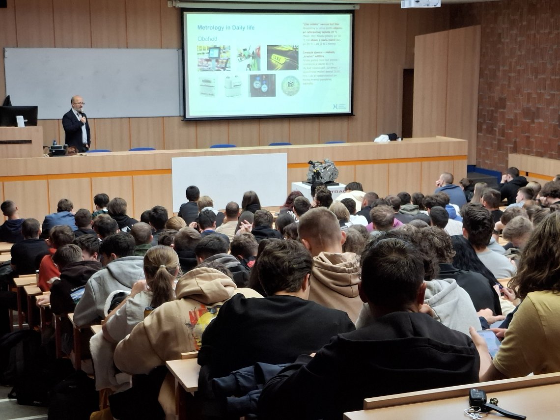 Náš kolega Miloš Ujlaky, riaditeľ odboru metrológie, začiatkom októbra v rámci pozvánky od prof. Ing. Michala Kelemena, PhD., riaditeľa ústavu automatizácie, mechatroniky, robotiky a výrobnej techniky Strojníckej fakulty Technickej univerzity v Košiciach, v rámci aktivity „Prednáška odborníka z praxe“ pripravil a odprezentoval študentom vždy populárnu prezentáciu na tému: Vedeli ste, že? Alebo, čo ste možno nevedeli o metrológii. Napríklad: „Vedeli ste, že v bežnom komerčnom lete sa vykoná viac ako 5000 meraní každú sekundu – výška, tlak, rýchlosť, poloha, záťaž, palivo..., Boeing 787 obsahuje tisíce senzorov, alebo že v lietadle je viac ako 1 000 meraných kritických parametrov?“