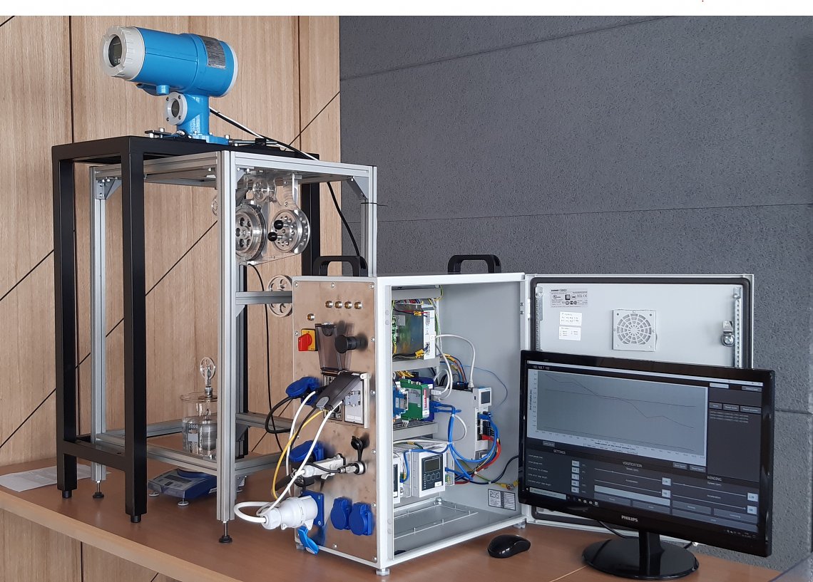 An example of a unique device is a measuring system for verifying level gauge meters. It is a portable device that allows to perform verification or calibration in the laboratory as well as directly at the customer’s site. Thanks to a control algorithm based on a PD controller and tuned by Ziegler - Nichol’s method, it is possible to automate the process of calibration or verification.