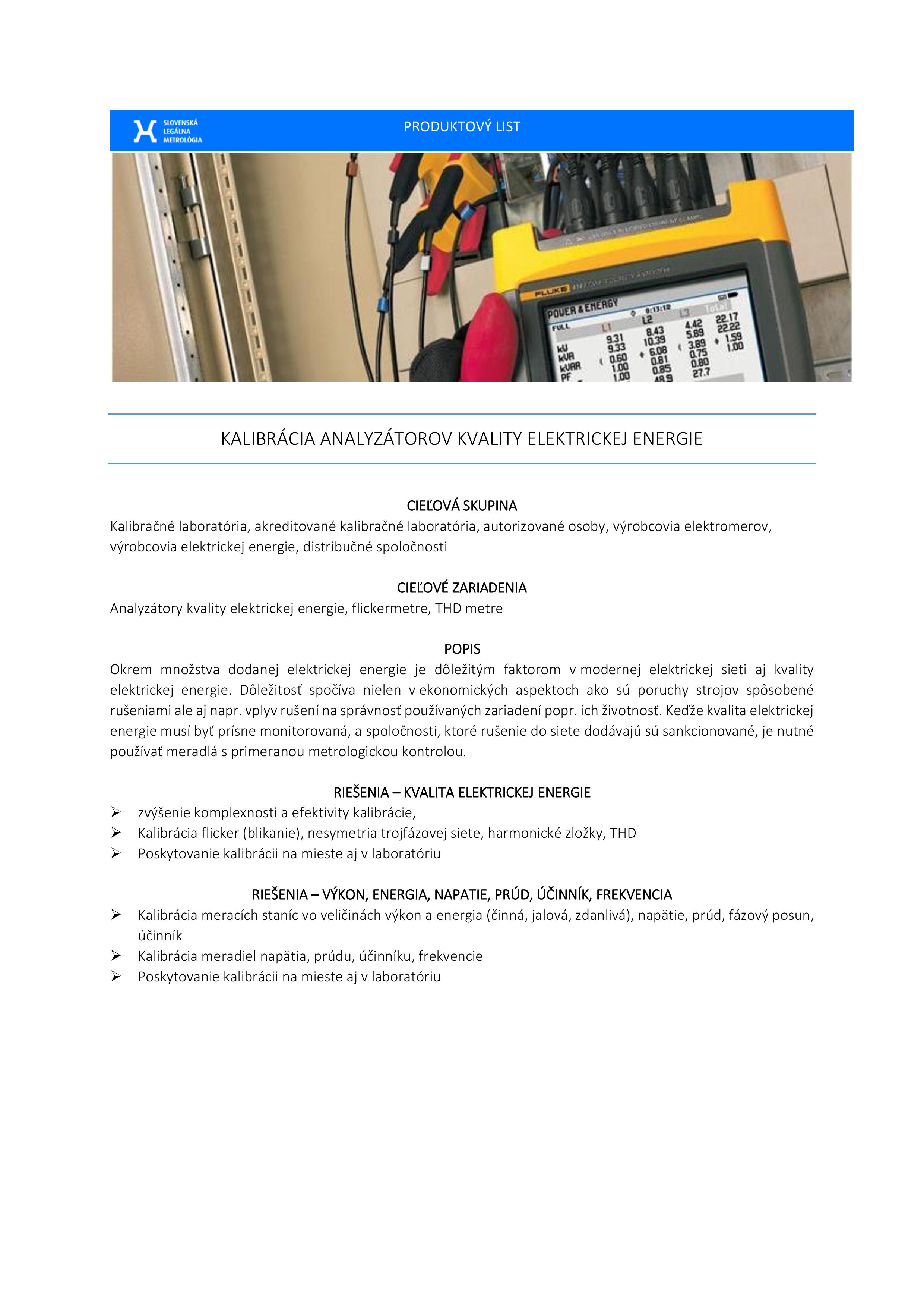KALIBRÁCIA ANALYZÁTOROV KVALITY ELEKTRICKEJ ENERGIE